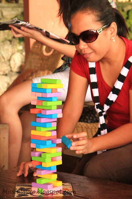 Then there's the soloista Gladys (untiedescape.blogspot.com). She came solo and she slept in the van from Manila to Batangas. Extra quiet (or maybe again, I'm super loud) but played very well in the jenga game. She never toppled down the tower - ever. Galing! But when it comes to honesty during Truth or Dare - ikaw na! Kabog lahat. We really appreciate the honesty Gladys.